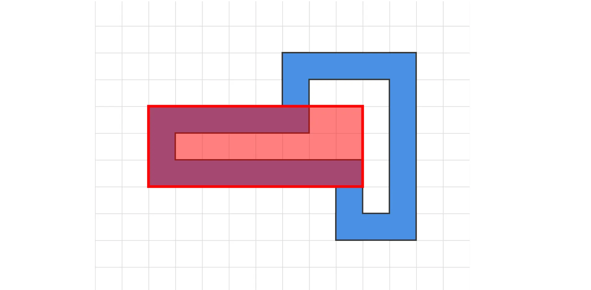 Due to how we validate a rectangle (just by checking overlapping edges), the above rectangle is still considered to be OK and is selected, while the actual solution should be the following: