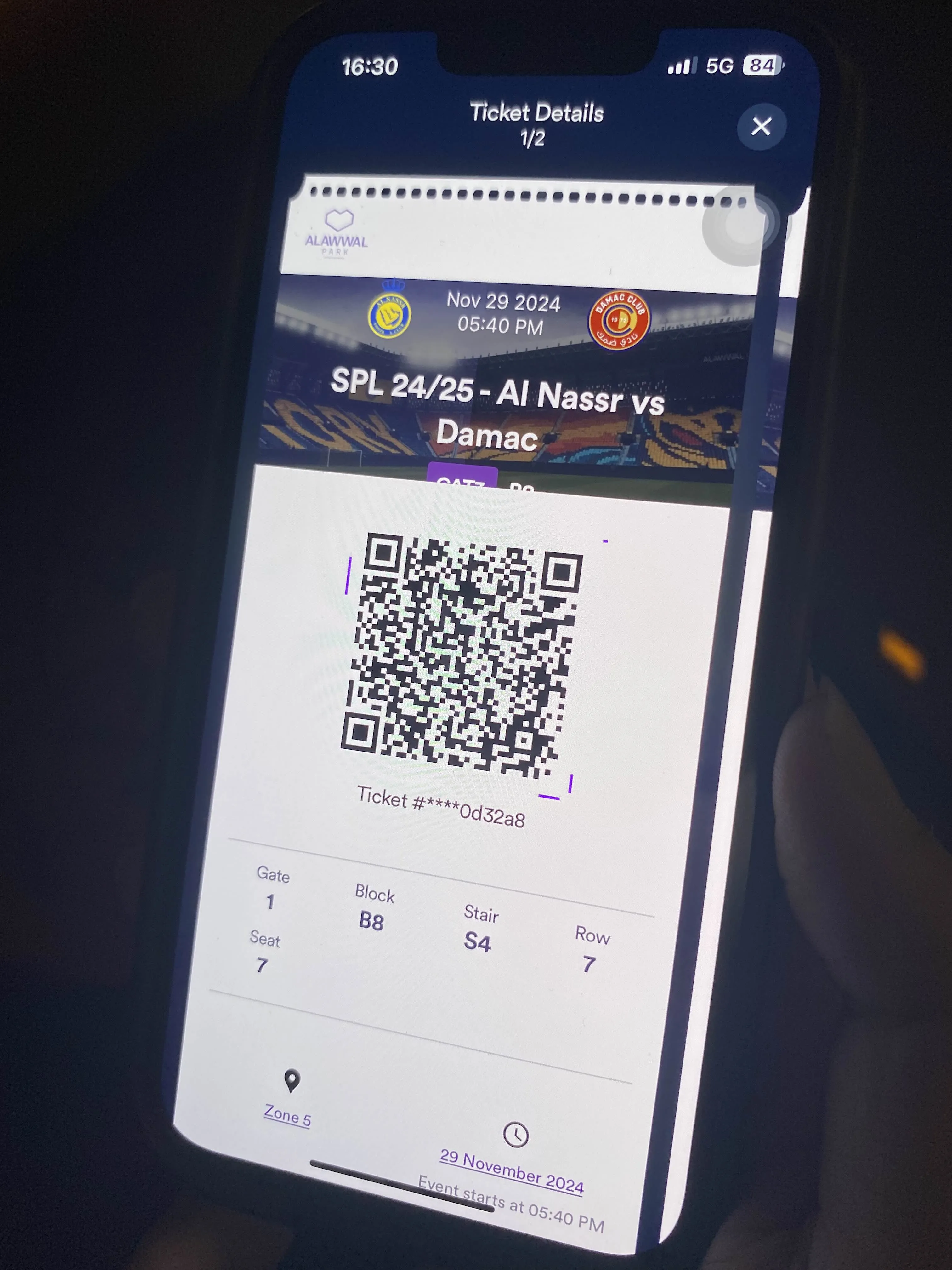 I didnโt expect the ticket for this football match at Al-Awwal Park (home stadium of Al-Nassr) to be super cheap - we bought 2 tickets for seats in the corner of the stadium for ~15$ each.